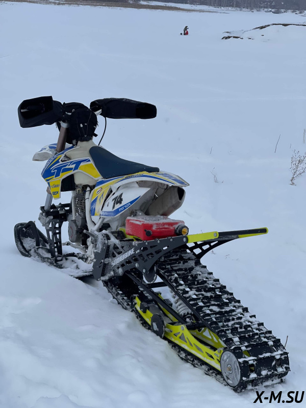 Folk 120 от Snowbike — универсальный гусеничный комплект для внедорожных мотоциклов. Гусеничный мотоцикл (СНОУБАЙК) это, по сути, одноколейный снегоход. Вы получаете возможность продлить мото сезон и эксплуатировать мотоцикл не только летом но и зимой.